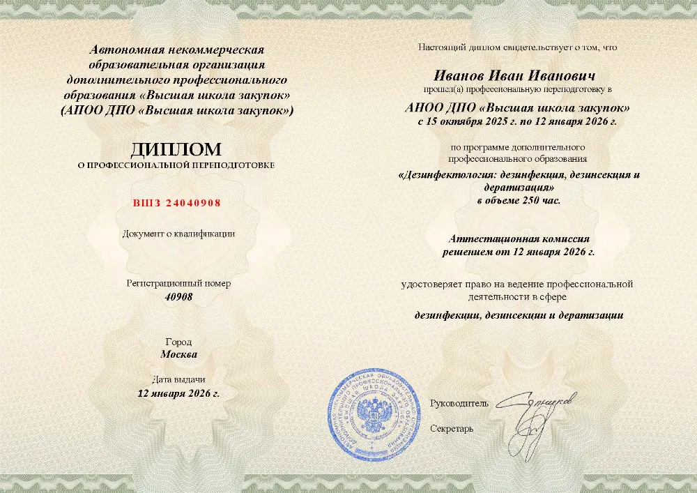 Профессиональная переподготовка на 250 часов. Изучите организацию санитарной службы, все виды обеззараживания (дезинфекция, дезинсекция, дератизация), стерилизацию и правовые нормы. Программа включает практическую работу для отработки навыков. Онлайн-обучение в в Тамбове с итоговой аттестацией.
