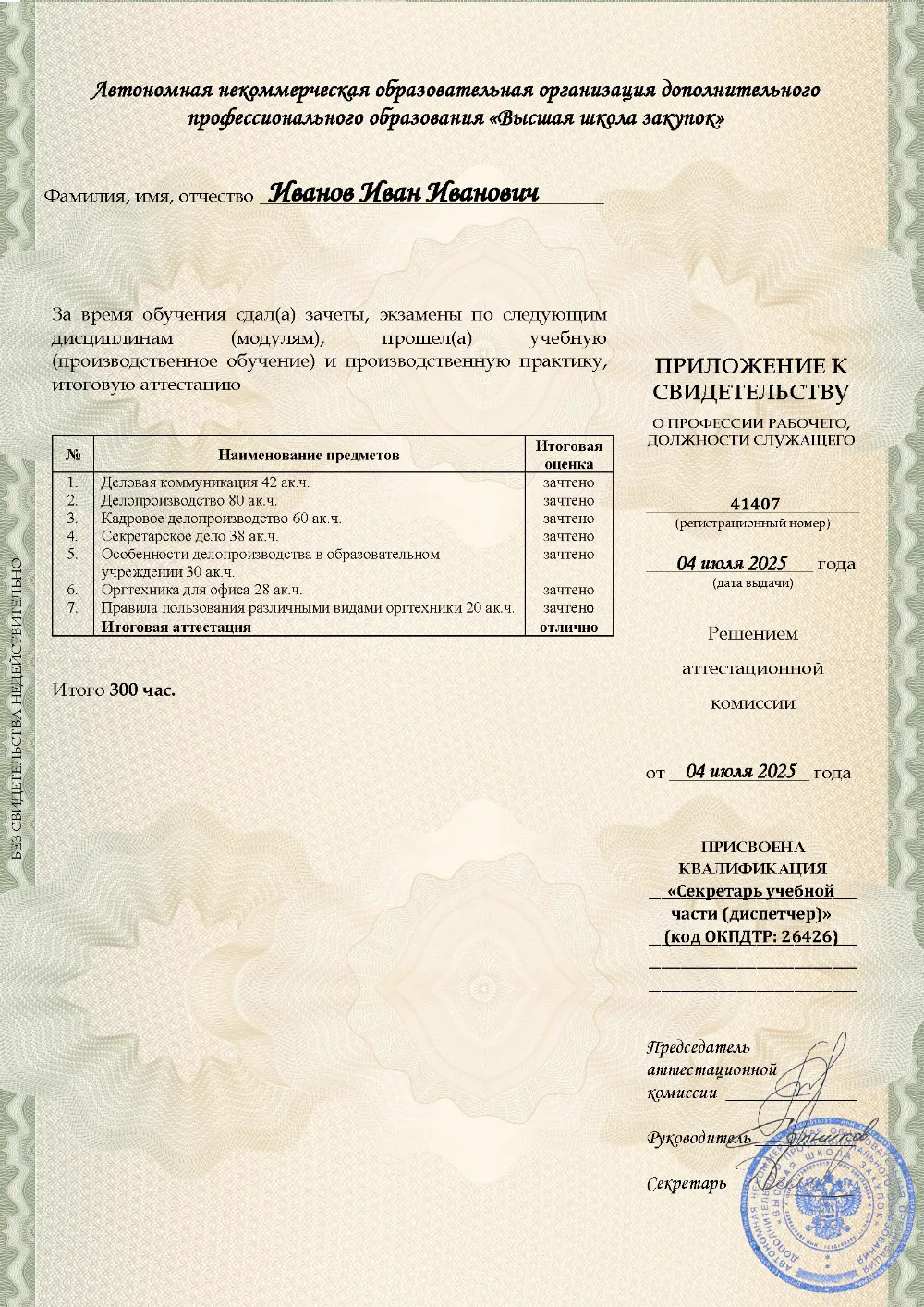 Профессиональное обучение, 300 академических часов, 7 модулей: деловая коммуникация, общее и кадровое делопроизводство, секретарское дело с учетом особенностей образовательного учреждения, работа с оргтехникой. Онлайн-обучение в в Тамбове с итоговой аттестацией.