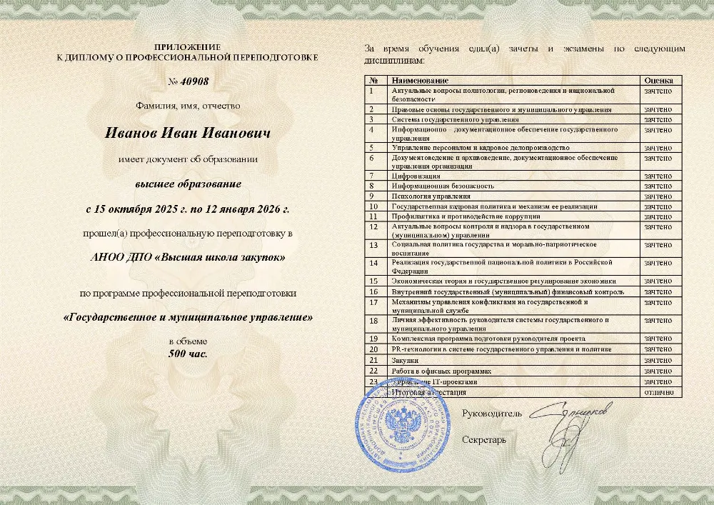 Профессиональная переподготовка, 500 академических часов, 25 модулей: правовые основы и система государственного управления, управление персоналом, финансами и противодействие коррупции, социальная политика и экономическое регулирование, цифровизация, закупки и информационная безопасность. Онлайн-обучение в в Тамбове с итоговой аттестацией.
